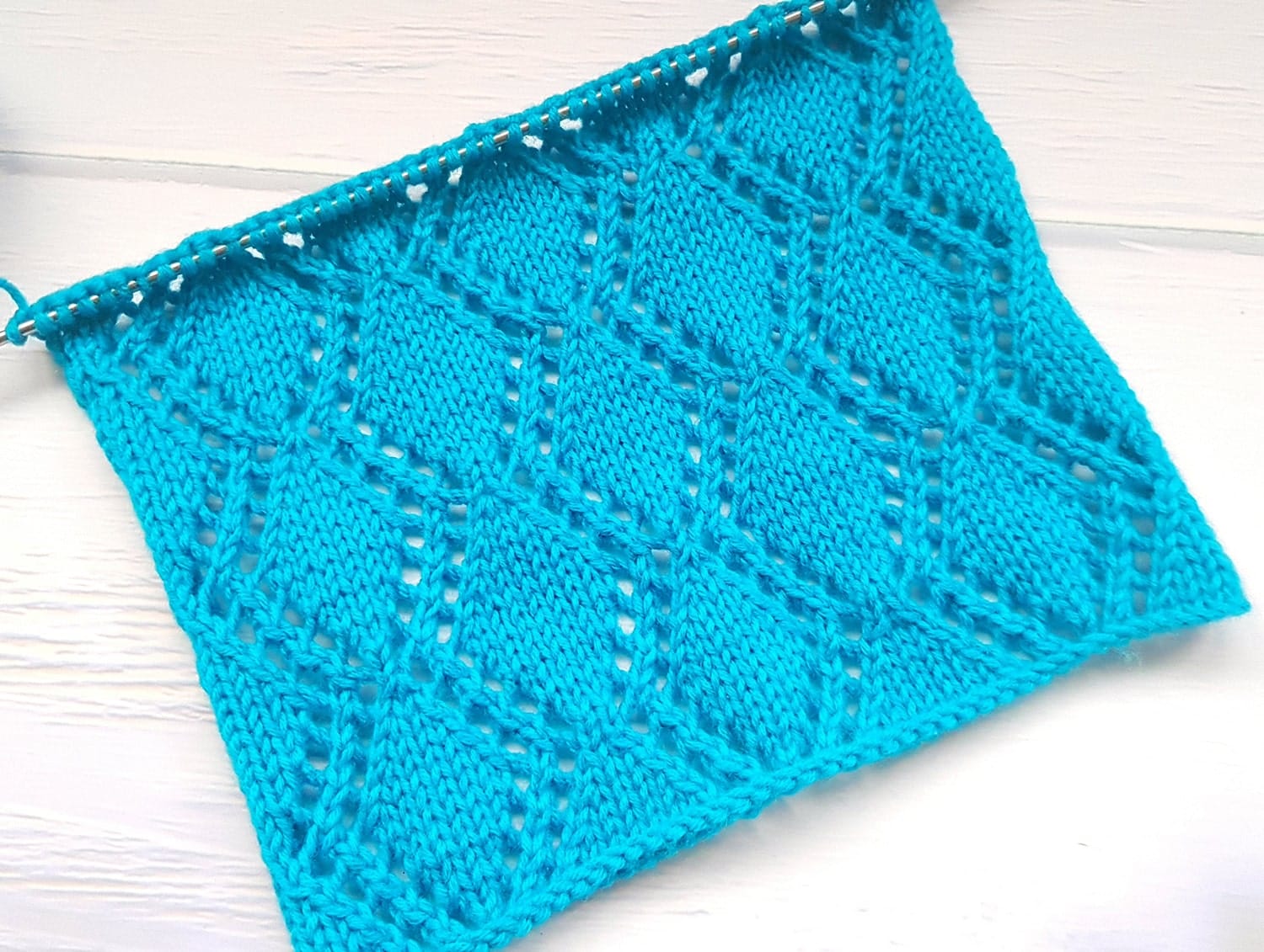 Ajour-Rautenmuster stricken Wie man das Ajour-Rautenmuster strickt: M-Zahl teilbar durch 15 + 2 + 2 Rdm. 19 M (1 + 15 + 1 + 2 Rdm) anschlagen und nach der Strickschrift stricken. Es sind nur Hin-R gezeichnet. In den Rück-R alle M und die Umschläge links stricken. Mustersatz = 15 M breit. Beginnen mit 1 Rdm und 1 M vor dem MS, den MS stets wiederholen, enden mit 1 M nach dem MS und 1 Rdm. In der Höhe die 1.- 16. R stets wiederholen.